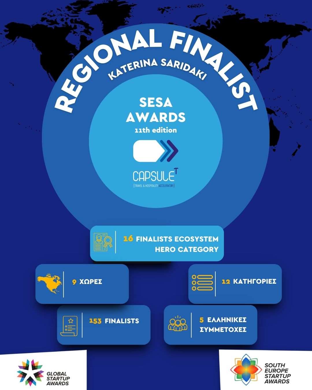 Με μεγάλη χαρά και υπερηφάνεια μοιραζόμαστε ότι η Κατερίνα Σαριδάκη, Διευθύντρια του CapsuleT Accelerator, είναι Regional Finalist στα South Europe Startup Awards 2025, στην κατηγορία Ecosystem Hero of the Year.